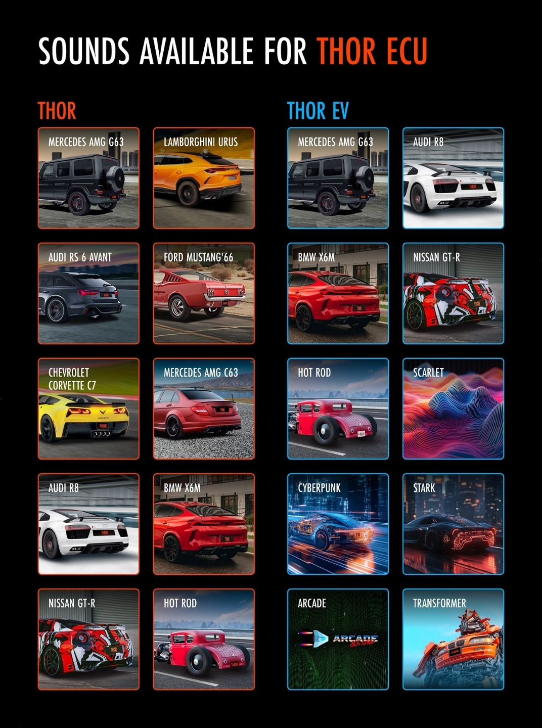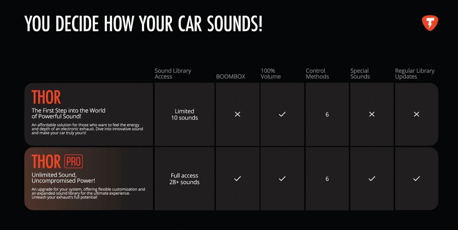 THOR zijn krachtige luidsprekers in bolvormige structuren gemaakt van een titanium- en stalen legering. Het systeem past op vrijwel elke moderne auto vanaf 2005.